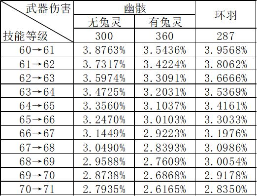 其具体值受武器伤害、技能等级、双伤比例影响