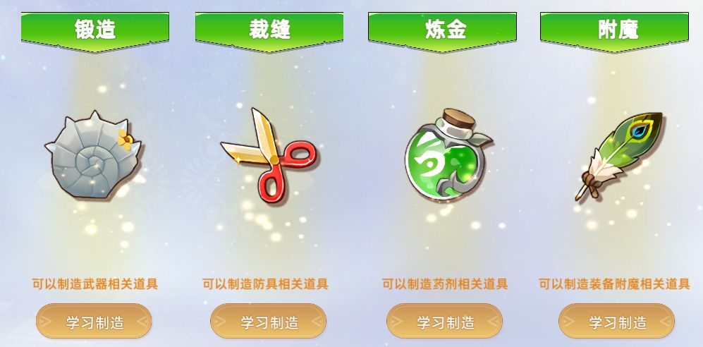 锻造、裁缝、炼金、附魔本篇中主要介绍副职中的炼金