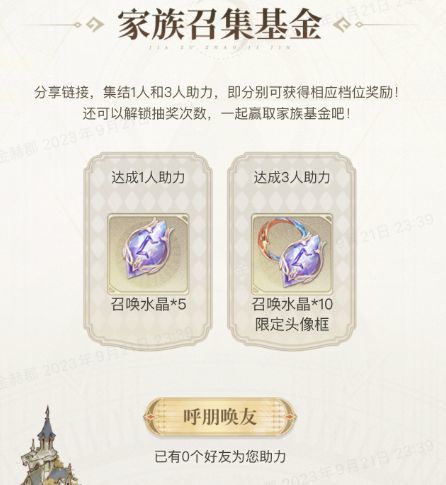 好了,活动奖品就介绍到这,活动本身参与起来也是非常简单呢~仅需要动动手指,点击【呼朋唤友】按钮,分享链接,邀请好友参与助力,即可获得对应档位的奖励了(15连抽和小小头像框奉上,不成敬意,还望笑纳~)
