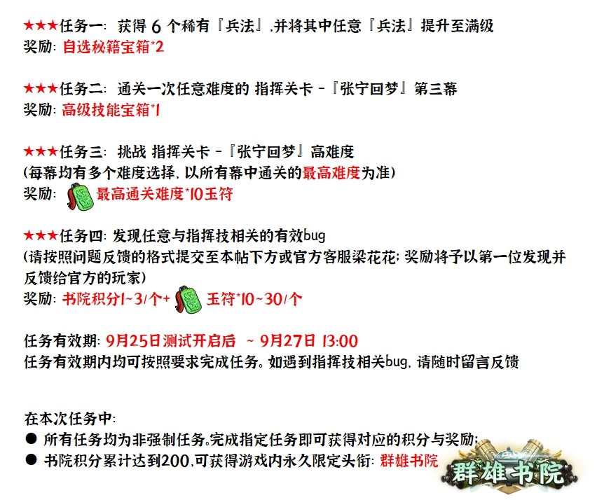 ● 测试服可能会不定期更新、调整,请关注【群雄先锋团交流】中的官方通知;