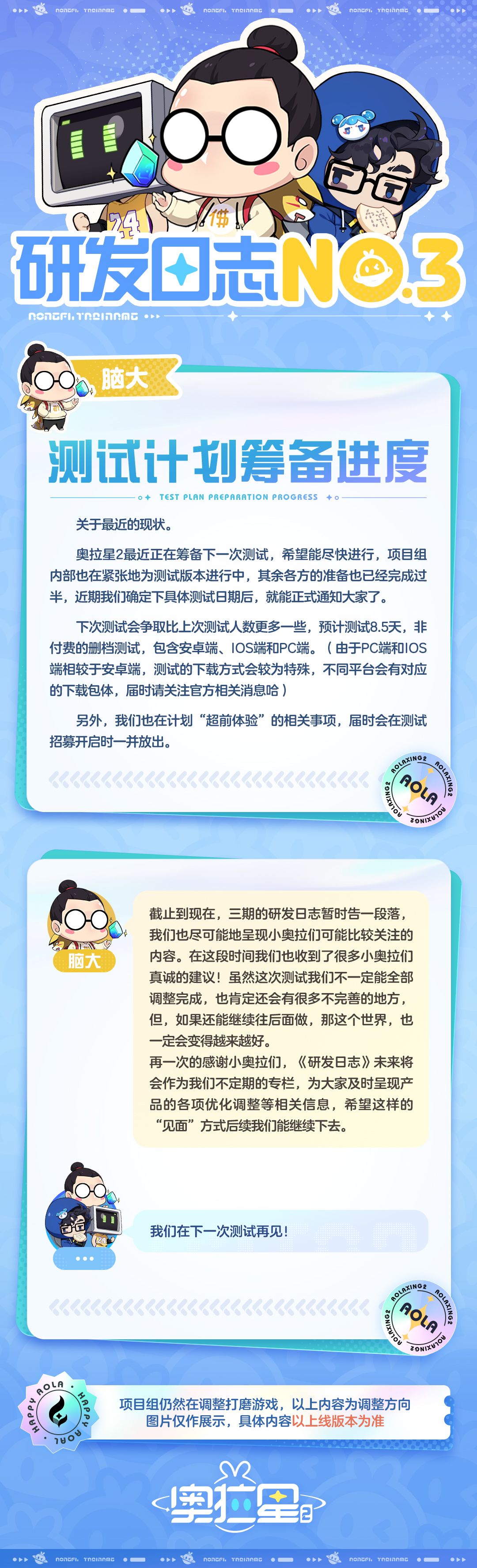 接下来就是筹备测试,希望能尽快确认下来跟大家见面的日期。