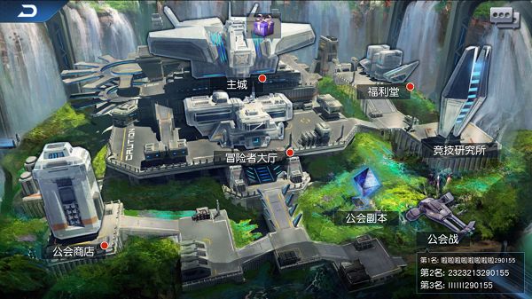 从主界面进入公会系统,迎面而来的是很精致的公会场景和建筑物,看来官方对公会系统还是极为重视的。公会建筑物总共有主城、福利堂、公会商店、冒险者大厅、竞技研究所、公会副本、公会战六大建筑。
