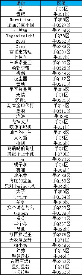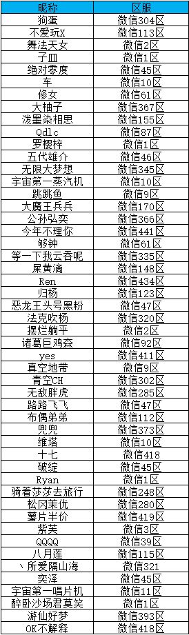 以上即为本次参与测试的玩家名单,请各位受邀参与测试的队长按时进入测试服参与活动,并请您用报名登记时留下的微信或QQ添加官方工作人员,届时会邀请您加入官方玩家群,以便与您及时沟通,具体请以通知为准!