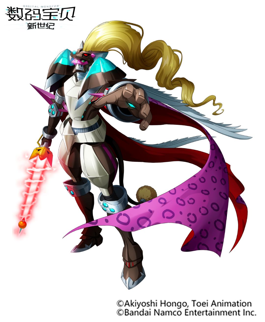 飞龙的能力被激发至更高的层次,外形变得凶煞不祥,而其龙铠的大部分则由最轻的稀有金属“蓝色数码合金”构成。尽管如此,仅仅振翅一挥就能瞬间令大型重量级的君主兽飞到超高的高度,其原因就在于飞龙那绰绰有余的强劲力量。会为了主人施展“飞龙阵风”,竖起头部巨大的角并振翅飞翔,用身躯向敌人突进,空战方面在皇家骑士中拥有一等一的实力。
