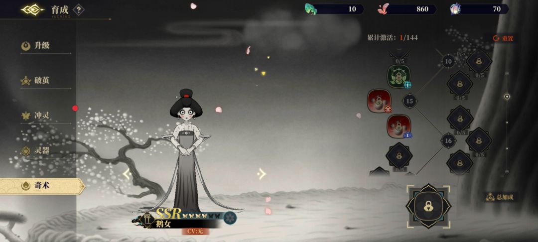 加点不能从上到下依次加点!!!因为每周给的材料真的很少!所以必须都用到刀刃上!这里分别以天狗和鹅女为例: