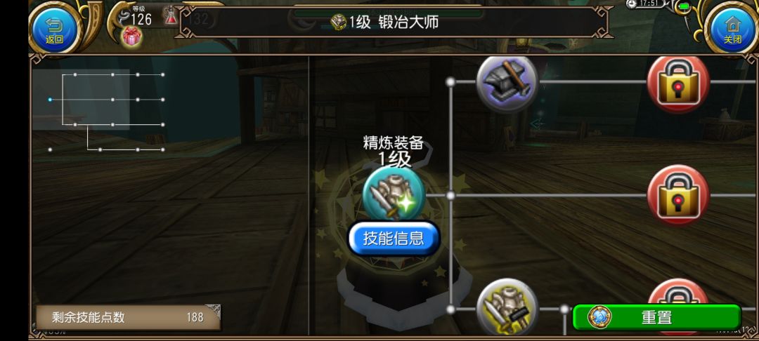 接下来是精炼角色的技能方面,精炼主要依靠的技能是精炼装备,想要学习这个技能要在图书馆的生活技能里面学习,而且必须要学会四阶锻冶技能才可以保障精炼的成功率,因此提升角色等级也很重要
