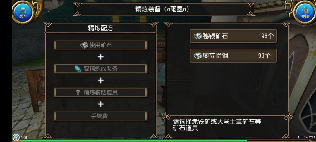 这两种矿石如何使用我们后面再说,在有了矿石道具后我们再回到我们的精炼菜单