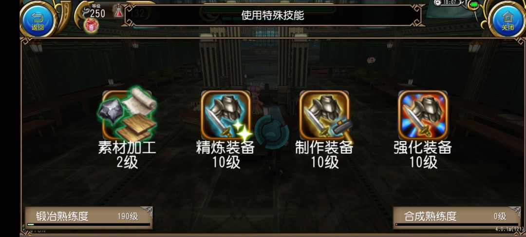 我们点击使用特殊技能就可以看到锻冶大师的菜单了