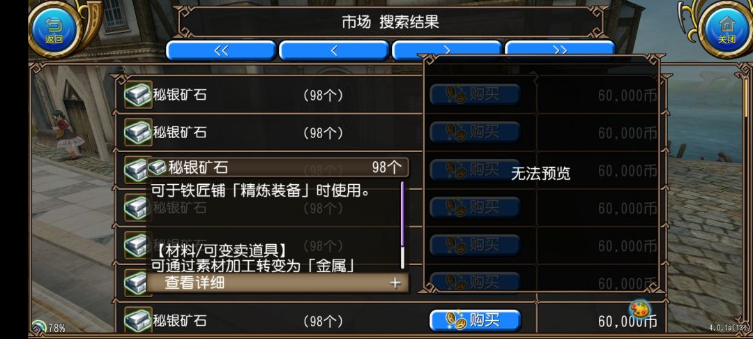 系统就会提示我们让我们选择矿石,这里我们先选择秘银矿石,
