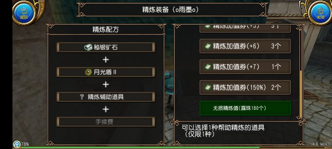 如图,我们选择的是精炼加值券+7就是可以直接让装备达到+7的精炼值