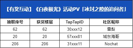 导航员在私信小助手时,请填写验证信息以便小助手快速确认您的获奖信息,验证信息:TapTap+冰封之隙+获奖昵称