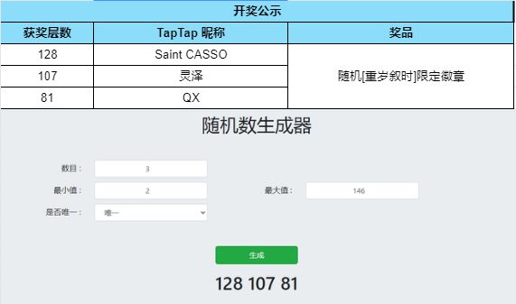 根据开奖结果显示,恭喜以下幸运的玩家们获得奖品: