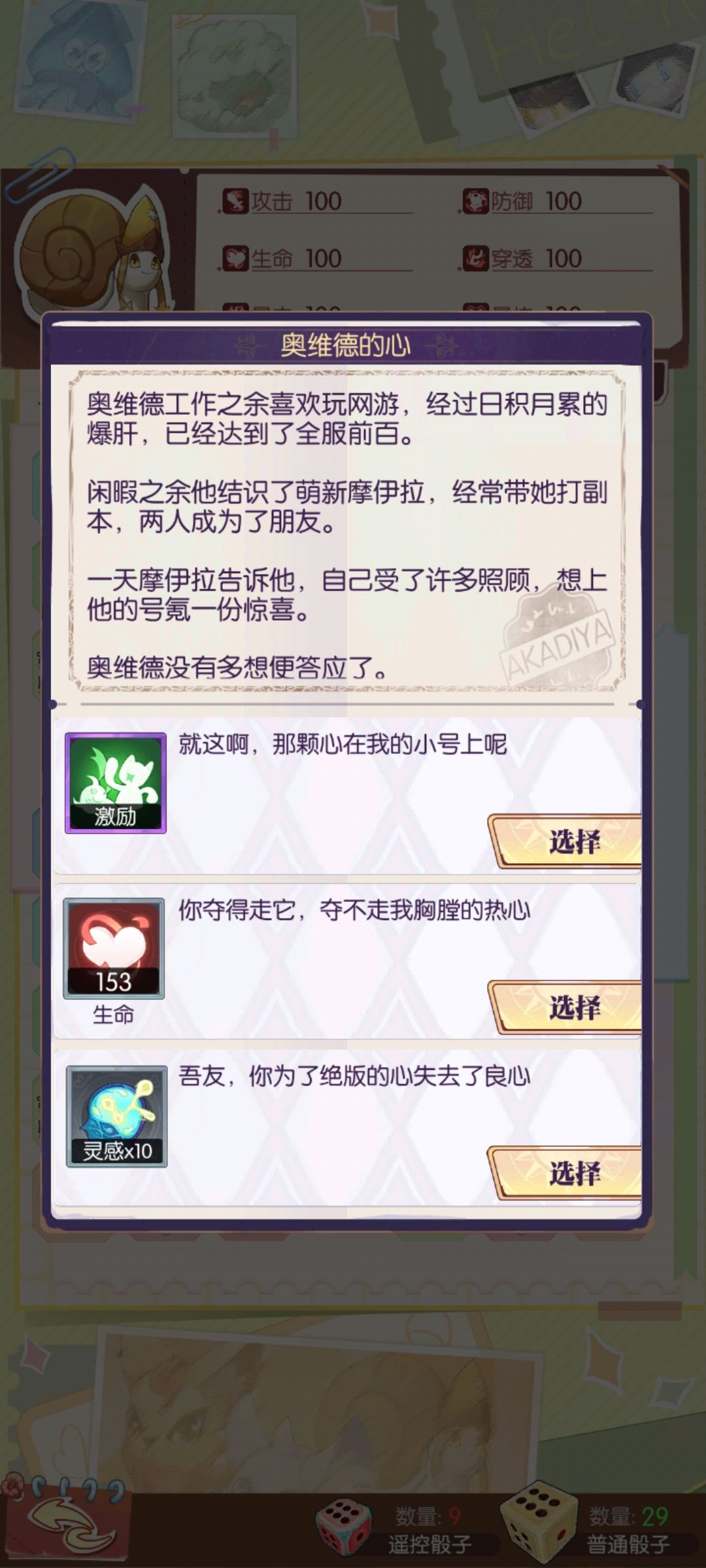 如下图所示,【童话格】会提供一个故事和3个选项:从上往下依次是:【随机特性】、【随机种类资质点】、【灵感】