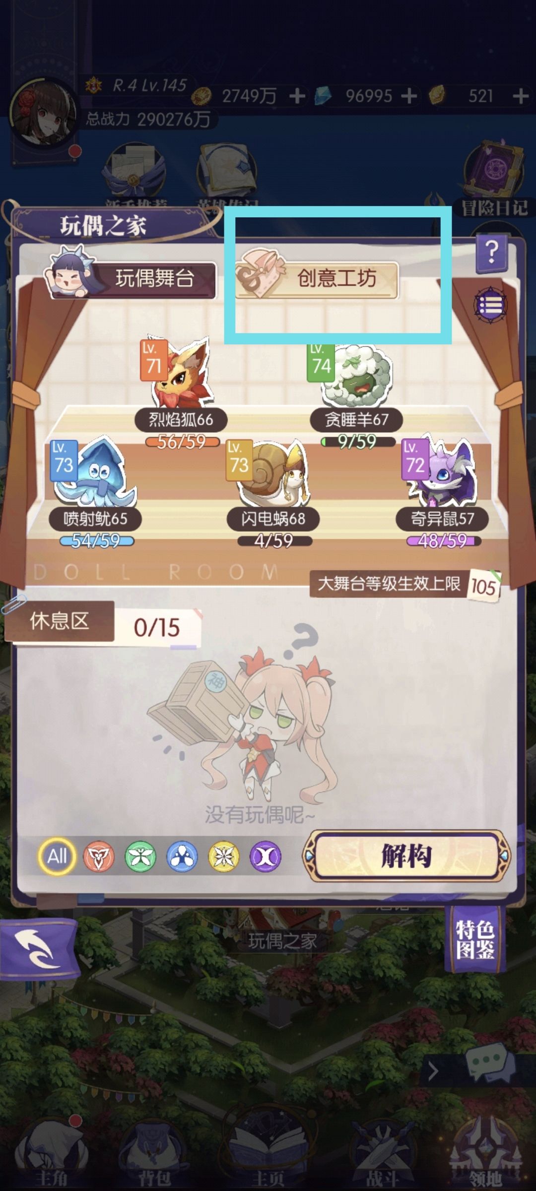 下半部分则是【休息区】,休息区中的玩偶【不提供任何效果】