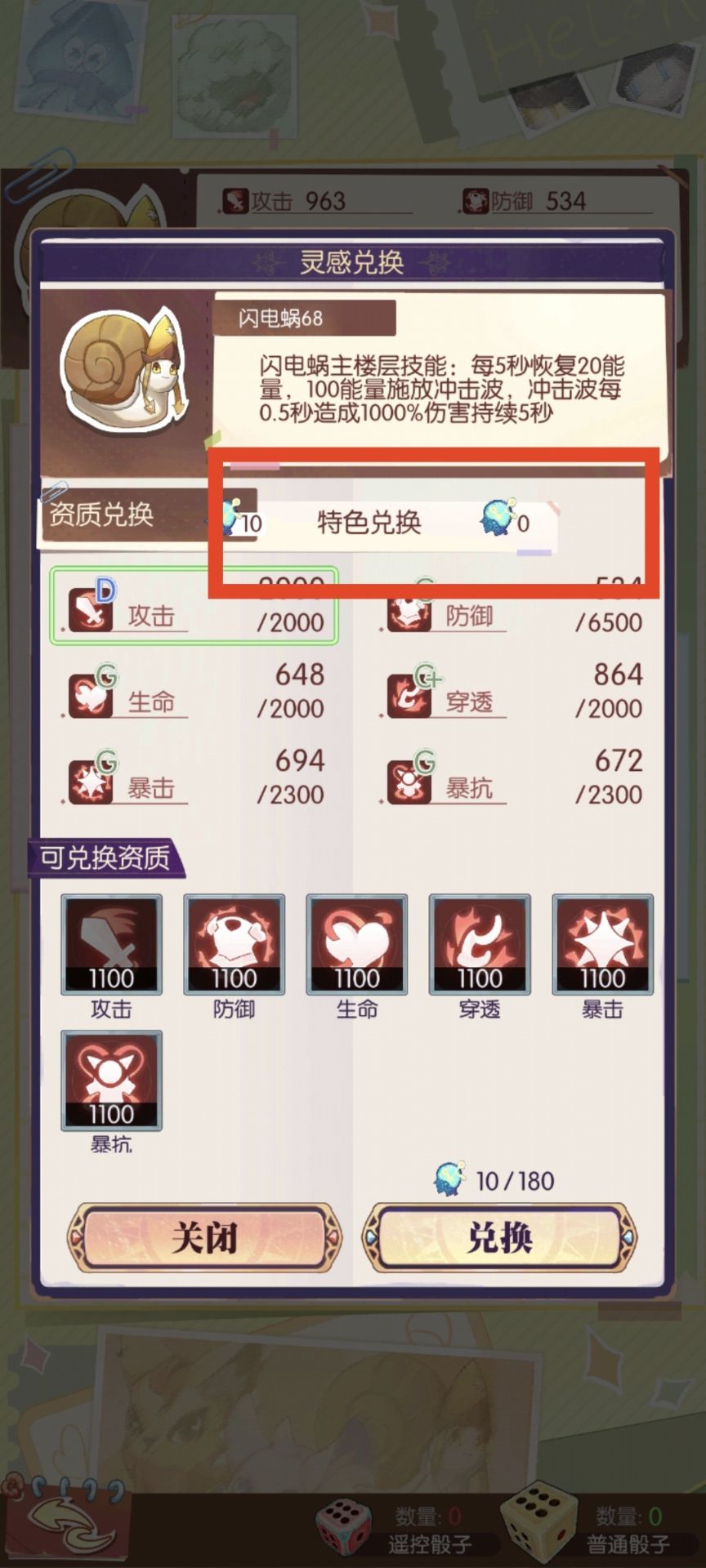 特性兑换列表【不变】,所有特性都是【10灵感1级】,可重复兑换升级。