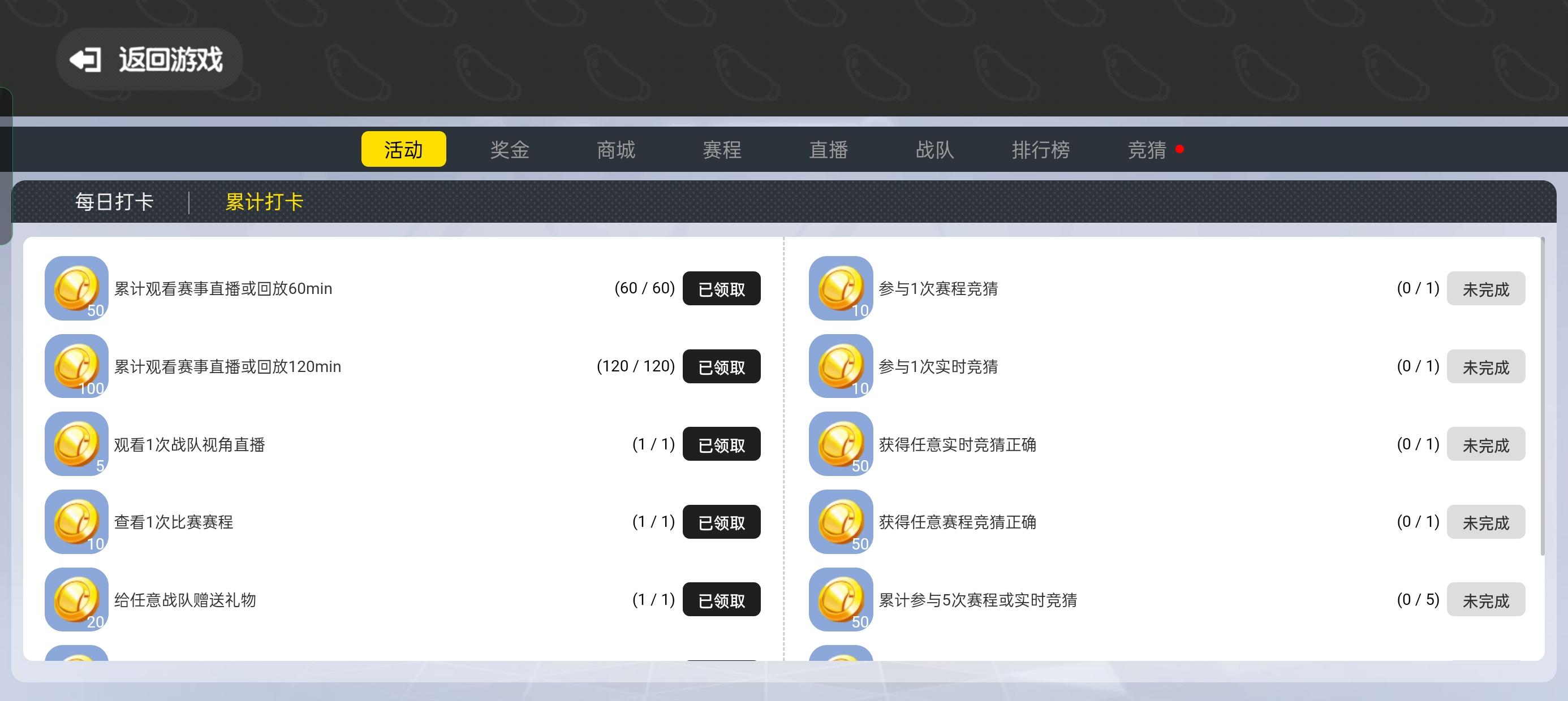 4、每天完成限时活动:9赛事币