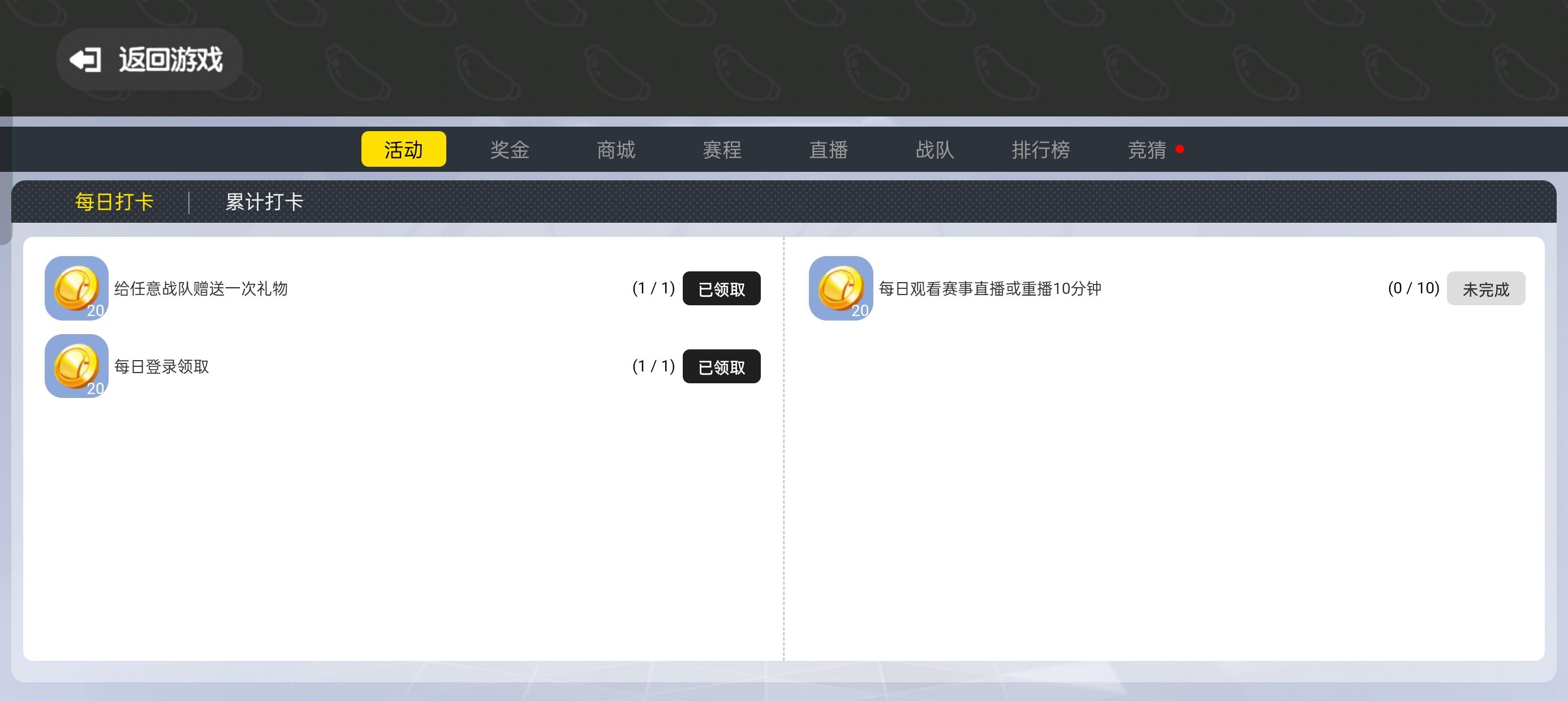 现在赛事币可以通过每日打卡和累计打卡获得