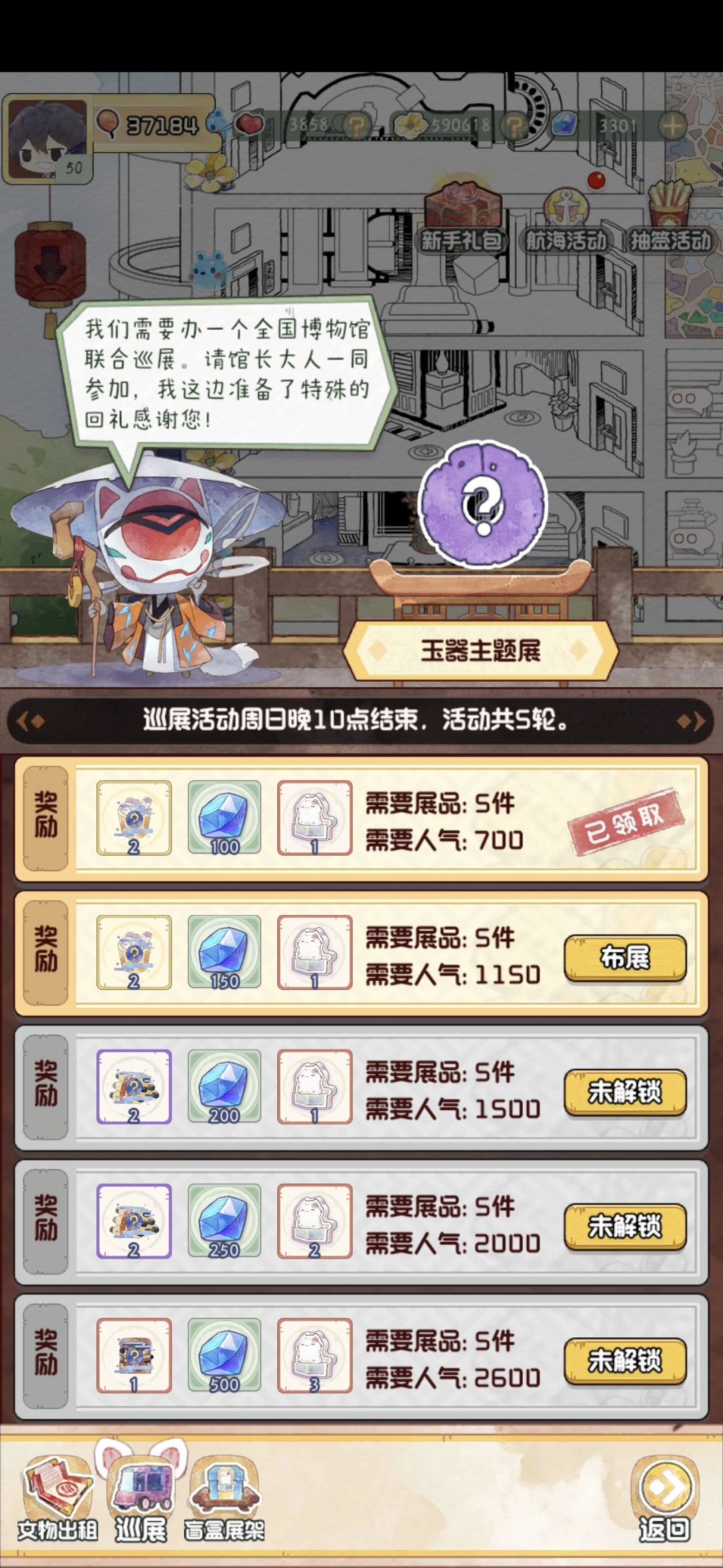 按照指示搭配巡展文物,达到所需的人气,可以获取一定钻石奖励。