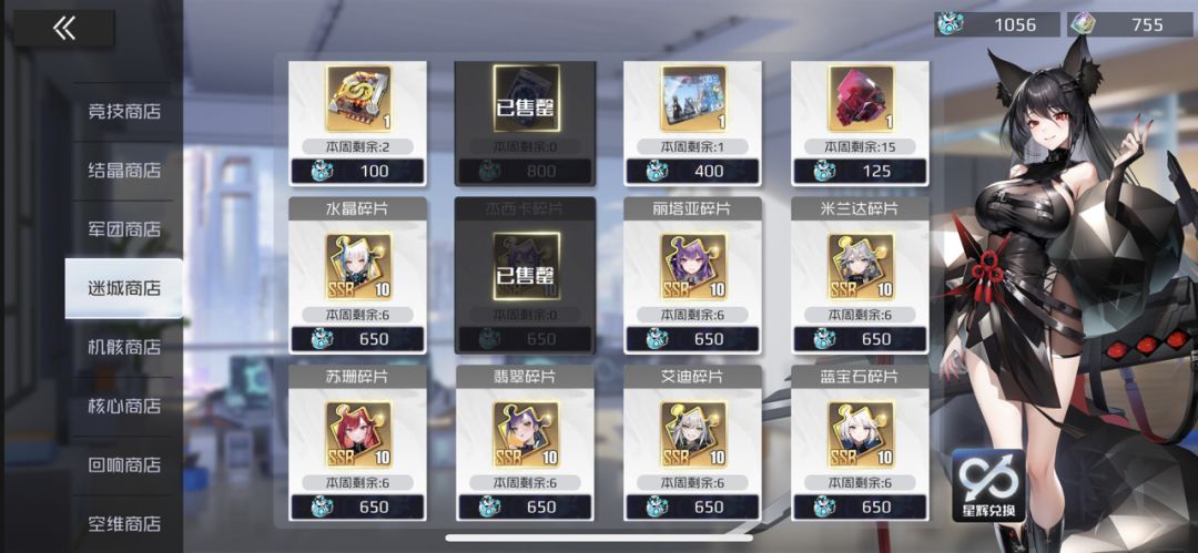 6 迷城商店:结晶买卡 和每周一次的票,积分买上阵的专武,没啥好说的