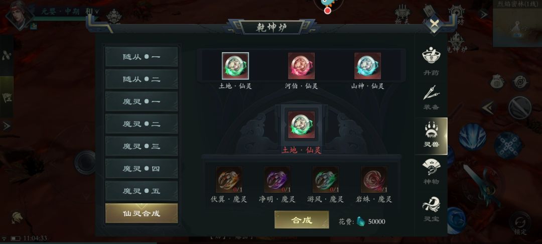 第二个是伏羲妖灵这个需要组队打目前,合成材料还是元婴灵虚遗迹副本的寒天石一个!这个首杀还掉混沌青莲。图中位置!