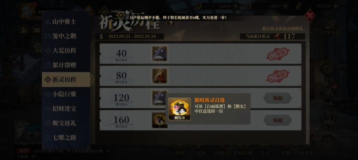 10.10前祈灵历程活动抽满160发送自选箱可以自选领1蝶,送的1蝶就可以用。