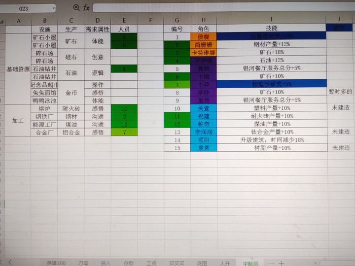 顺便分享下我的表格,仅供大家参考,只是根据我自己 拥有的崽崽做的简单搭配