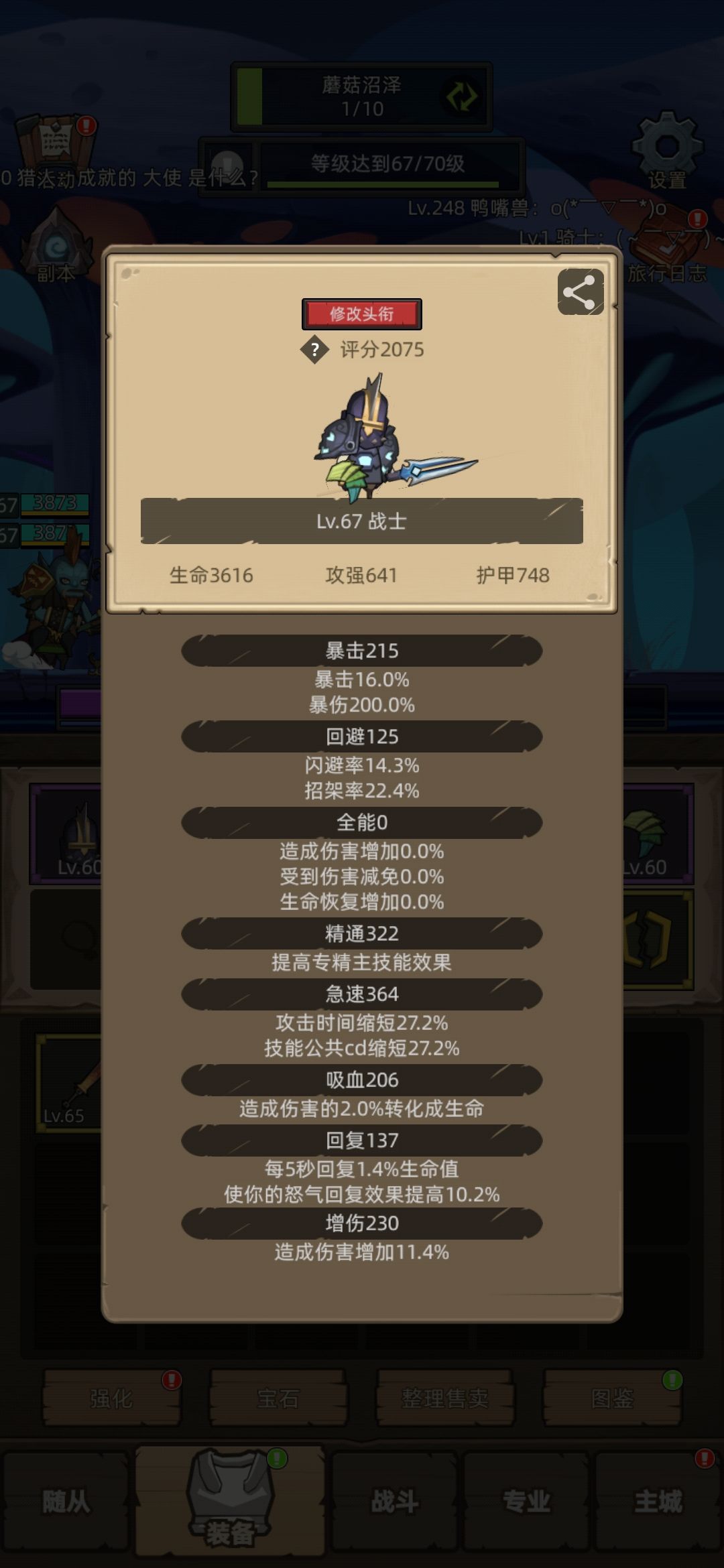 前期猥琐发育,后期天神下凡,一般来说满级慢的1周,快的5天,变态的2天,改版后的防战表现也是相当优秀吃资源大户,付出得到的回报绝对的爽属性方面前期急速不重要,全能暴击精通适当闪避吸血