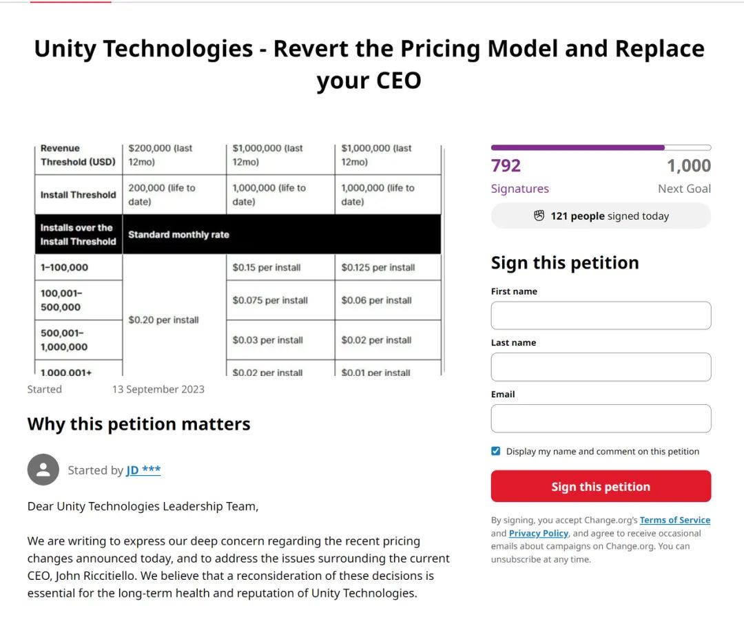 游戏开发者对Unity的要求很明确,比如有开发者在网站change.org上发起了一项联署活动,目标就是让Unity完全撤回价格调整,并更换CEO。