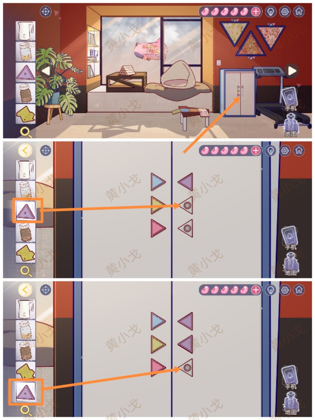21.(安婕房间-窗台)点击柜子,装上两个【三角形按钮】