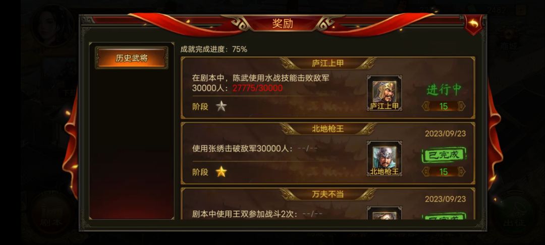 今天我刚刚发现的是,几个送点将台武将的任务,说明是在剧本里面,或者任意时候。