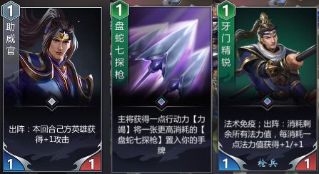 核心卡牌:助威官,盘蛇七探枪,牙门精锐