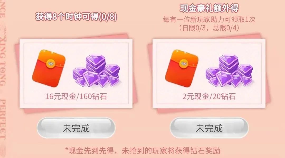 此外,累计获得8个时钟可得16元现金,每邀请一位新玩家还可领取2元现金(新注册账号的新玩家需为9月23日0点之后注册,邀请新注册账号的新玩家的奖励单日限制领取3次,总限制领取4次)~