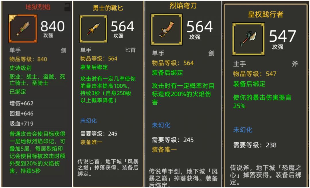 【装备】245的四件套和橙盾(核心物品)没有争议换不掉,武器方面选择多样性爆伤斧,暴击匕首,火焰刀,橙剑(毕业武器)都是想当不错的,其次攻击金色紫色戒指,防御金色紫色戒指(备用)萌新前期双护甲戒指+橙盾把护甲堆到8500以上就可以通235史诗本,但是245尽可能9000+比较稳,项链推荐铁星,优点能加护甲上限防止被秒,0闪百分百打断技能(除了被动放不出任何技能),饰品由于带铁星就不需要战吼打断了,我推荐号角+巨人,增加战吼时长,一场战斗基本吼2次就够其余时间只输出