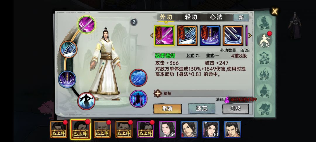 首先开局,你选什么武功不重要,重要的是你的第一个红色或橙色侠客他学的是什么,因为你不氪金短时间内养不起来两个人物,太费阅历和秘籍了,所以看到开局不用纠结想玩什么玩什么吧。然后刷侠客,30级前紫色英雄绝对够用,但是前提是你要重点看侠客出手,高于2.7的不要买,因为没卵子用,除非他自带武功是橙色的,但是目前没看到过,所以出手速度大于绝大多数因素,他决定了你队伍的输出,30级前的图只要你武功突破到3重,最少每人2连招基本上怪物摸不到你的。
