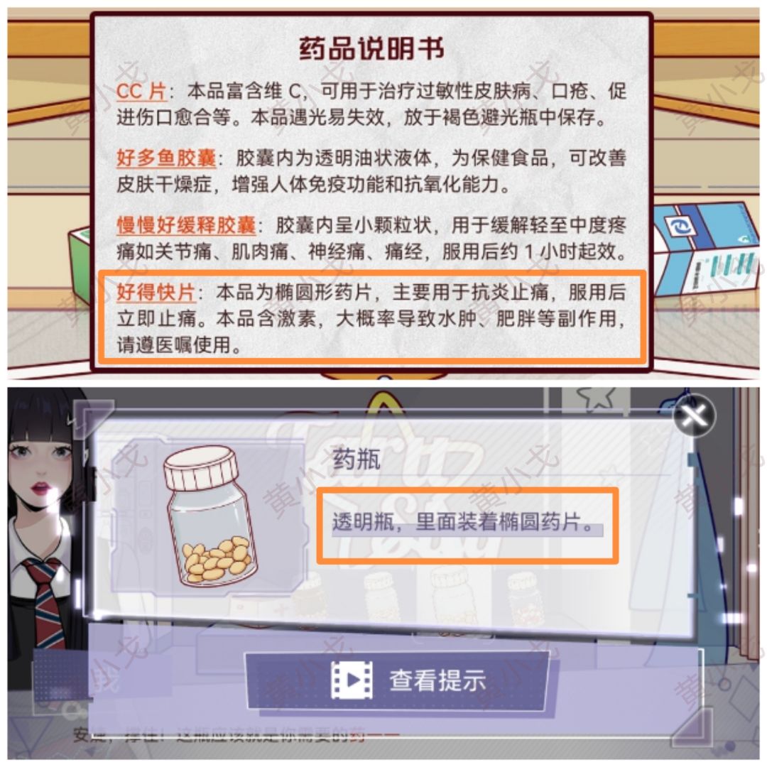 1.(练习室-场景1)对照说明书,选择椭圆形的好得快片