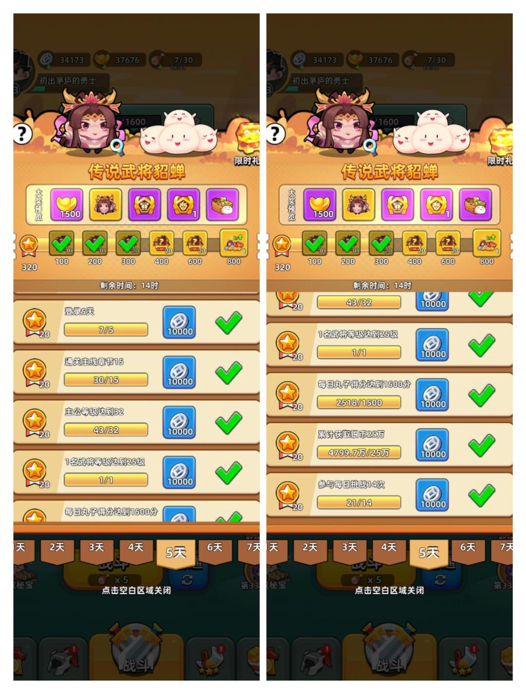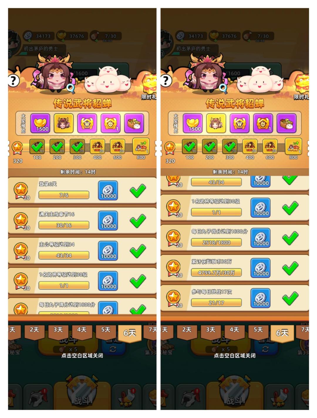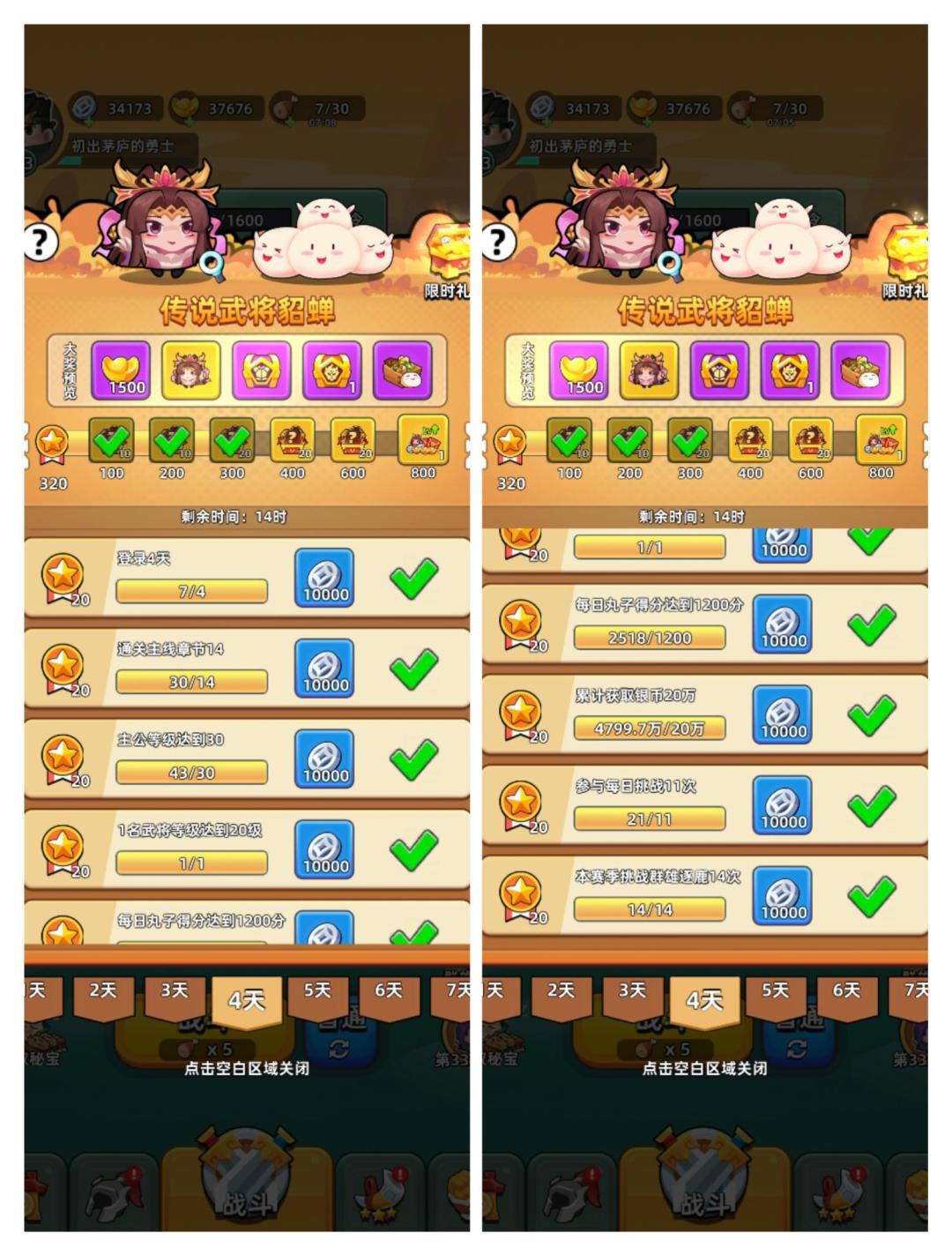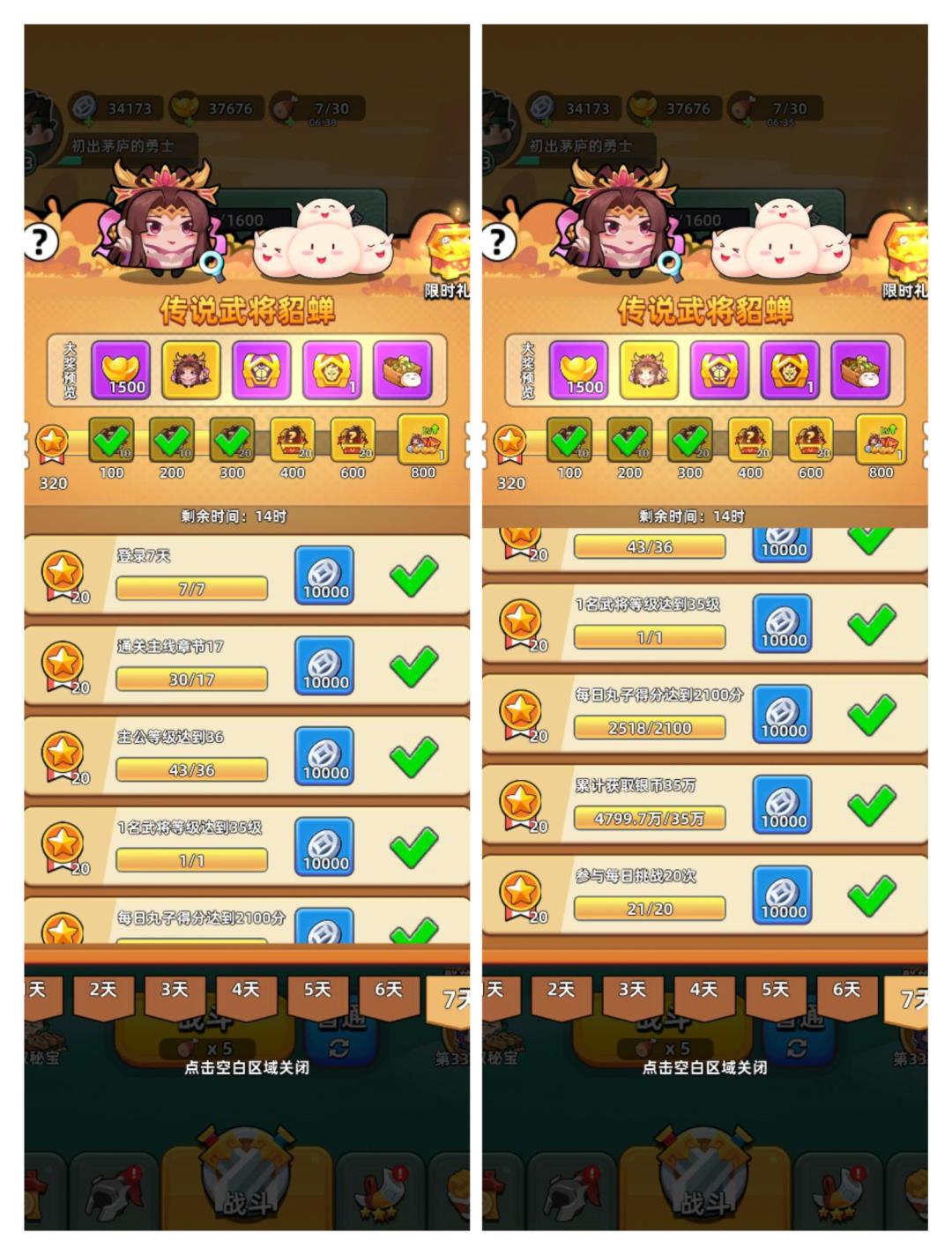 7日任务第二周——武将貂蝉周详细活跃度