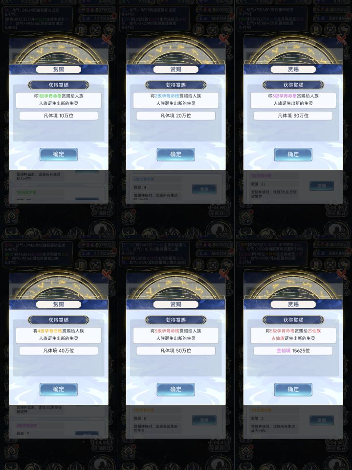 1级孕育命格对白色种族的孕育数量为10w,每级加10w,满级加50w白色种族。其余种族每高一级数量/2,红色种族吃5级孕育加15625人口,太拉了;