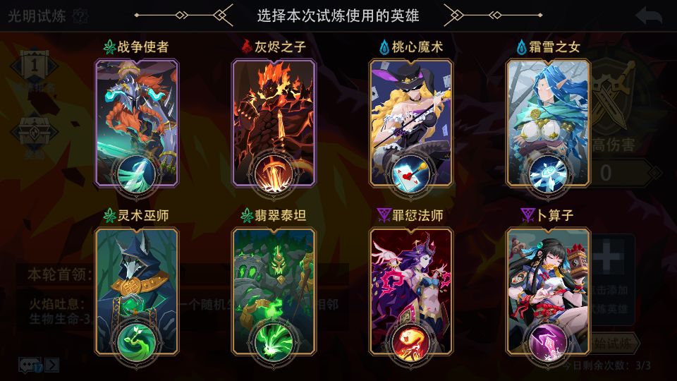 蘑菇补血流:(孢子+树妖+低语者+生命古树+治愈之风等)该常规打法一般可以拿满魔晶奖励,2000分伤害打满需要的条件较高。