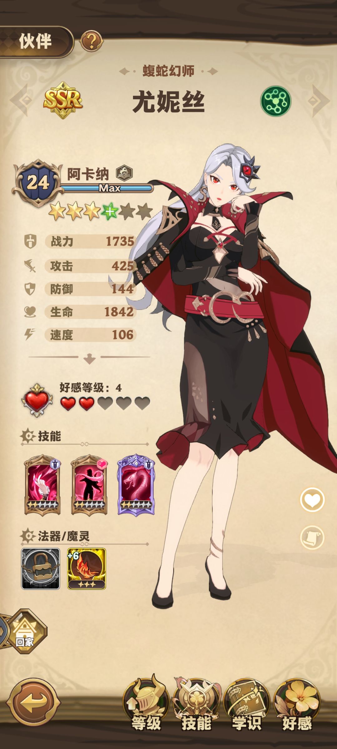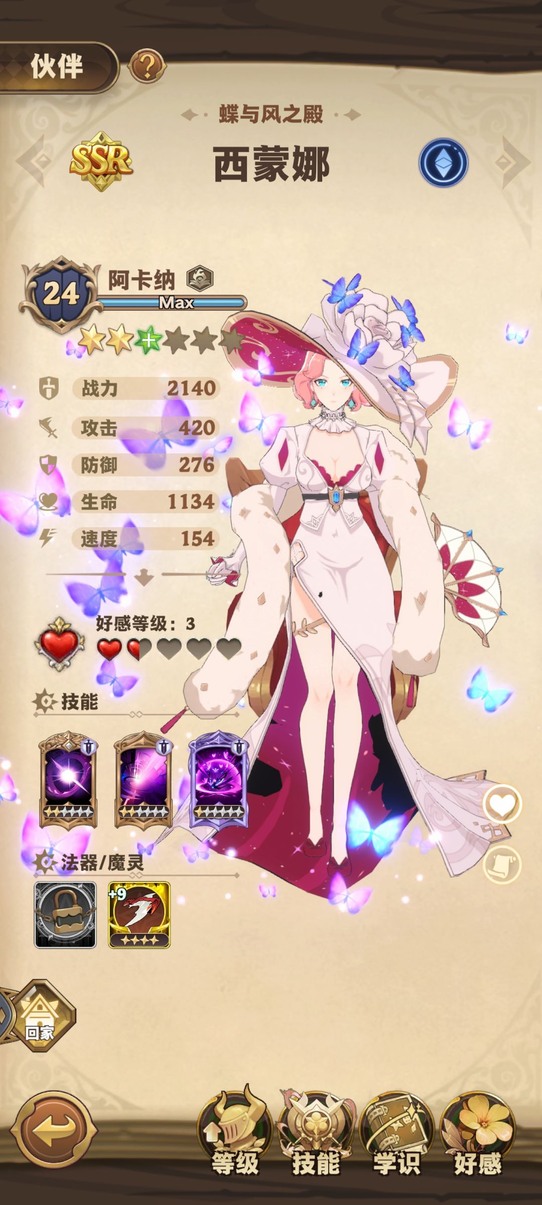 大招50%固定几率眩晕两回合,和蝶妈搭配控制的死死的,普攻和小技能毫无特色,好在紫色容易养。