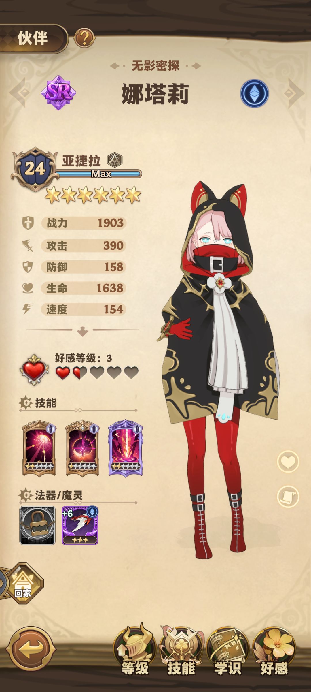 紫色品质,升星相对容易,上限极高,首测唯二能打出2000+伤害的伙伴了,毒刺一般和毒奶一块上场。