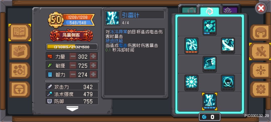 在后期本体暴击达到50%左右时可以舍弃引雷针将冷血点满,剩下三点可以自己分配