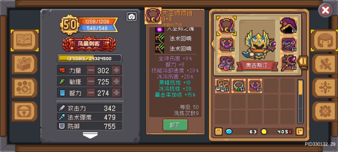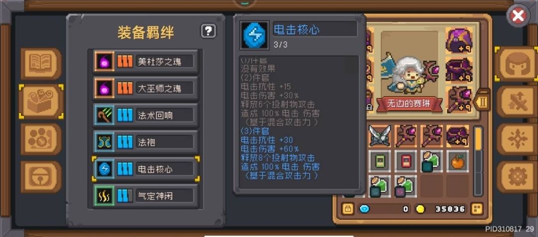 以下是我的装备可以参考一下,建议还是选择法袍三件套,我选择了皮甲三件套虽然成型快但后期比较乏力