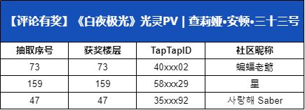 【已开奖】《白夜极光》光灵PV | 查莉娅·安顿·三十三号