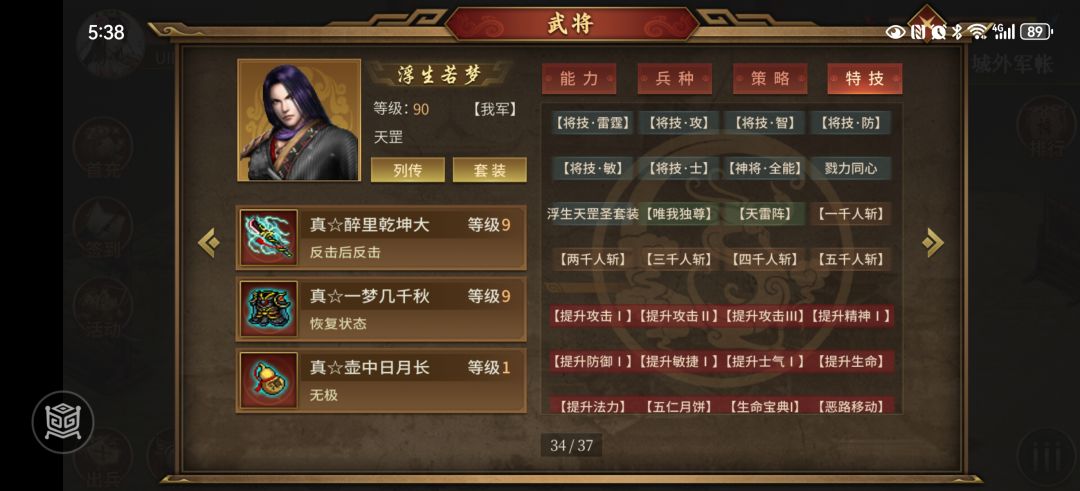 所以开始了漫长的演武场之旅,前面挂机到500层实在亏死,没练果,后面从500开始,想刷乌木哥拿成就的,结果发现概率喜人,大概平均SL60次才能遇上一把,幸亏群里大佬提醒,才果断放弃,专心练果,最后浮生和刘备是这样的,看下图。