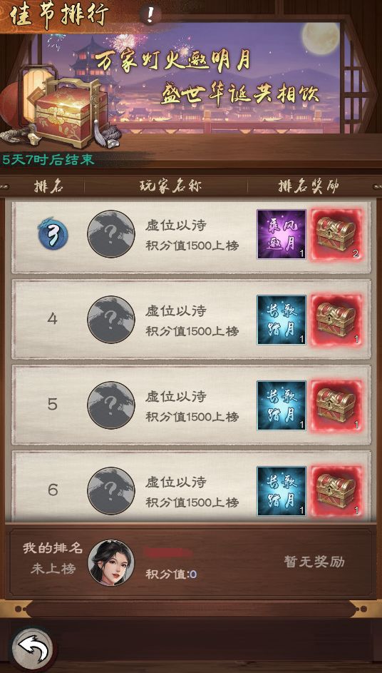 9.29-10.6活动期间。累计获得【月饼】数量达到1500及以上可上榜。排行榜前100名可获得称号及【盛世礼包】奖励,礼包内可以开出【赏善罚恶令】和【混元一气功】。