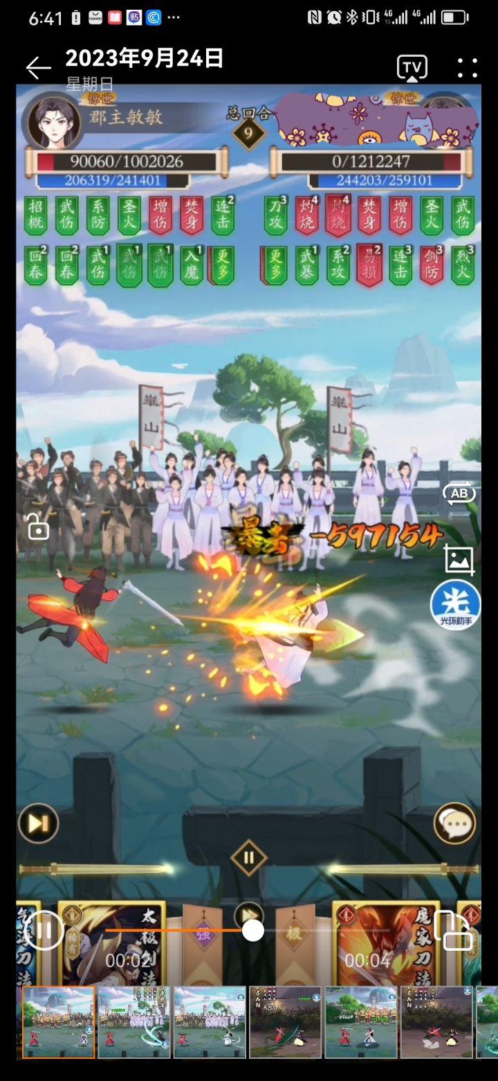 现在这套为前期波斯版本,几乎所有BUFF集中在玉慈和炎谭。玉慈的伤害有同气连枝,飞花飘絮,剑气绕身,剑势如虹,入魔,飞沙走石,佛光之息。连击有问鼎苍穹,先声夺人。暴击大彻大悟,飞花飘絮几率加,圣火的拼掌大概率也在这里。炎谭伤害同样有同气连枝,剑气绕身,剑势如虹,入魔,飞沙走石,阴阳无极,心诚则灵,佛光之息,另加如意破同时上阵的30%,连击问鼎苍穹。伤害会非常爆炸,所以只要撑到玉慈炎谭基本就结束战斗了。