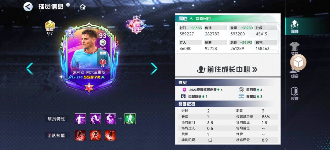 你有一个40皮、80评分的球员,战力也能超过一个没有皮肤的89评分的球员。由此可以看出皮肤的重要性。