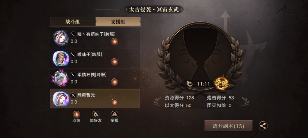 最后感谢各位大佬的配合及努力,开局前就安排好节奏,开局后的提醒。