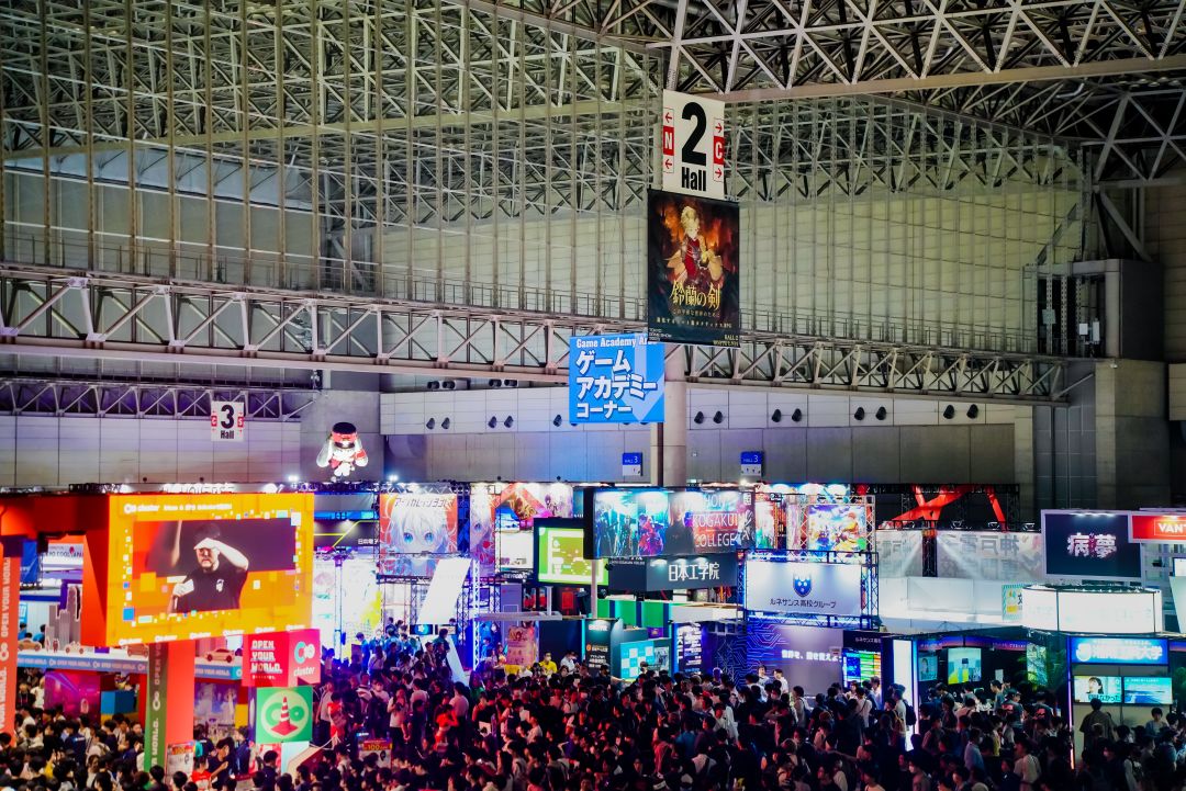 热闹的东京电玩展现场,天花板上方的挂牌是...