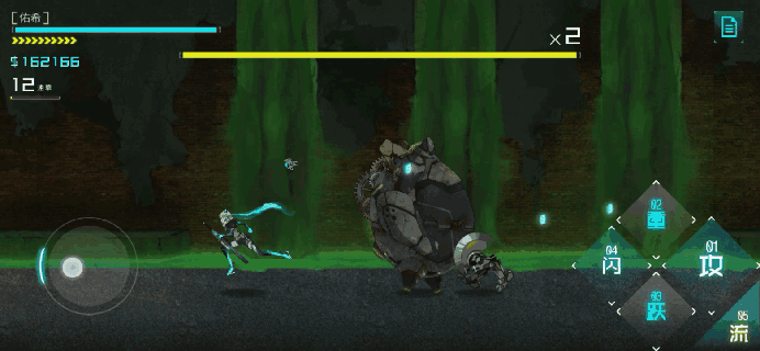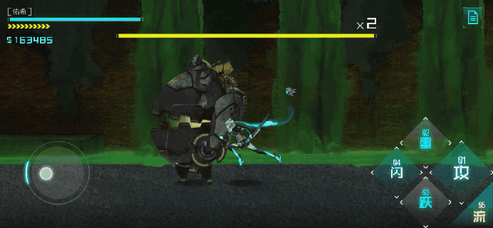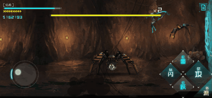 这里我说一下,如果不摸两下的话,在使用湍流的时候,组合怪在受到一定量的伤害后就会转身,到你落地的地方,来给你一拳,这是他的反击。而我做的就是,提前触发掉他的反击,然后就可以趁他防御空隙就可以输出。